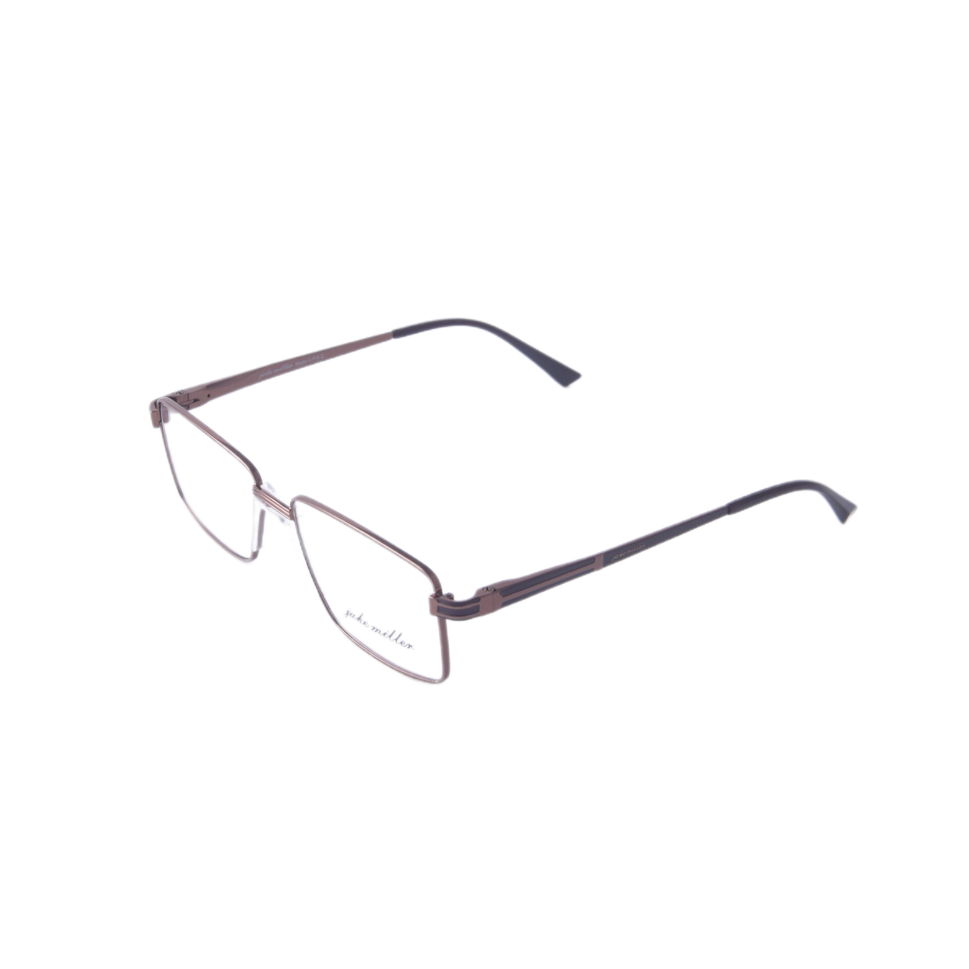 یک فریم فلزی مستطیلی است که دارای پد یک تکه بوده که باعث راحتی فریم روی بینی فرد میشود و دسته های فلزی فریم به رنگ قهوه ای میباشد که هماهنگی بی نظیری با بدنه عینک که قهوه ای است دارد. .این فریم دسته های فنری داشته و بسیار مقاوم میباشد.