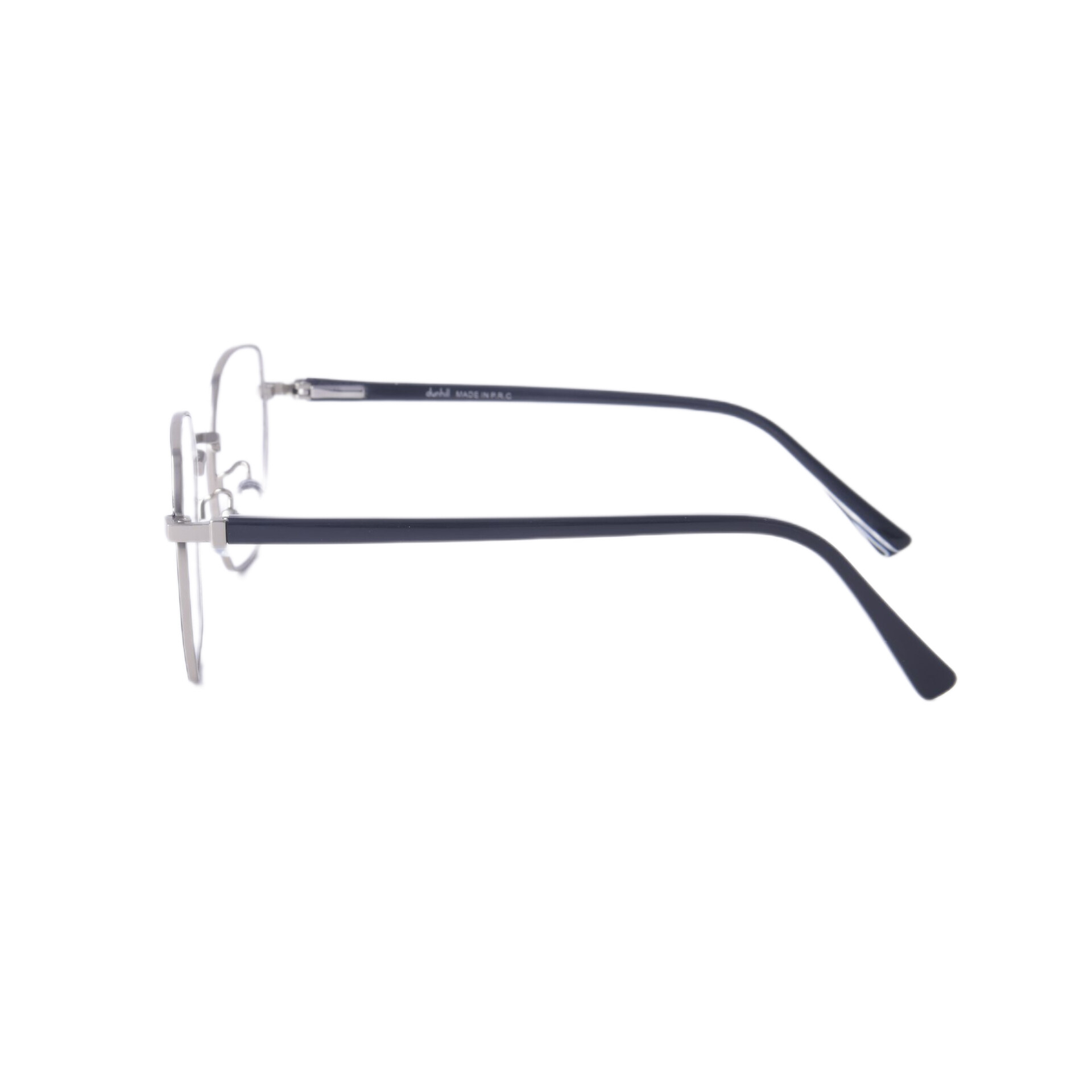 یک فریم فلزی چندضلعی است که دارای پد قابل تنظیم بوده و دارای دسته های کایوچویی به مشکی میباشد که هماهنگی بی نظیری با بدنه عینک که مشکی است دارد.این فریم بسیار مقاوم و به سبک فانتزی و اسپورت است.