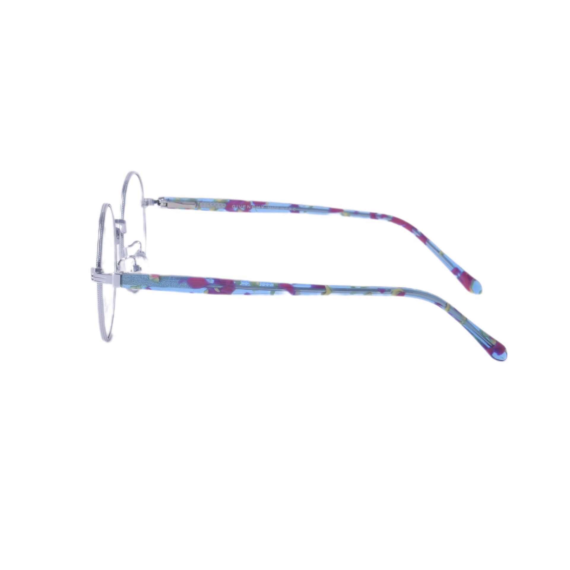 یک فریم فلزی گرد است که دارای پد قابل تنظیم بوده و دارای دسته های کایوچویی میباشد.پل بینی به رنگ نقره ای می باشد.این فریم بسیار مقاوم و به سبک فانتزی است.